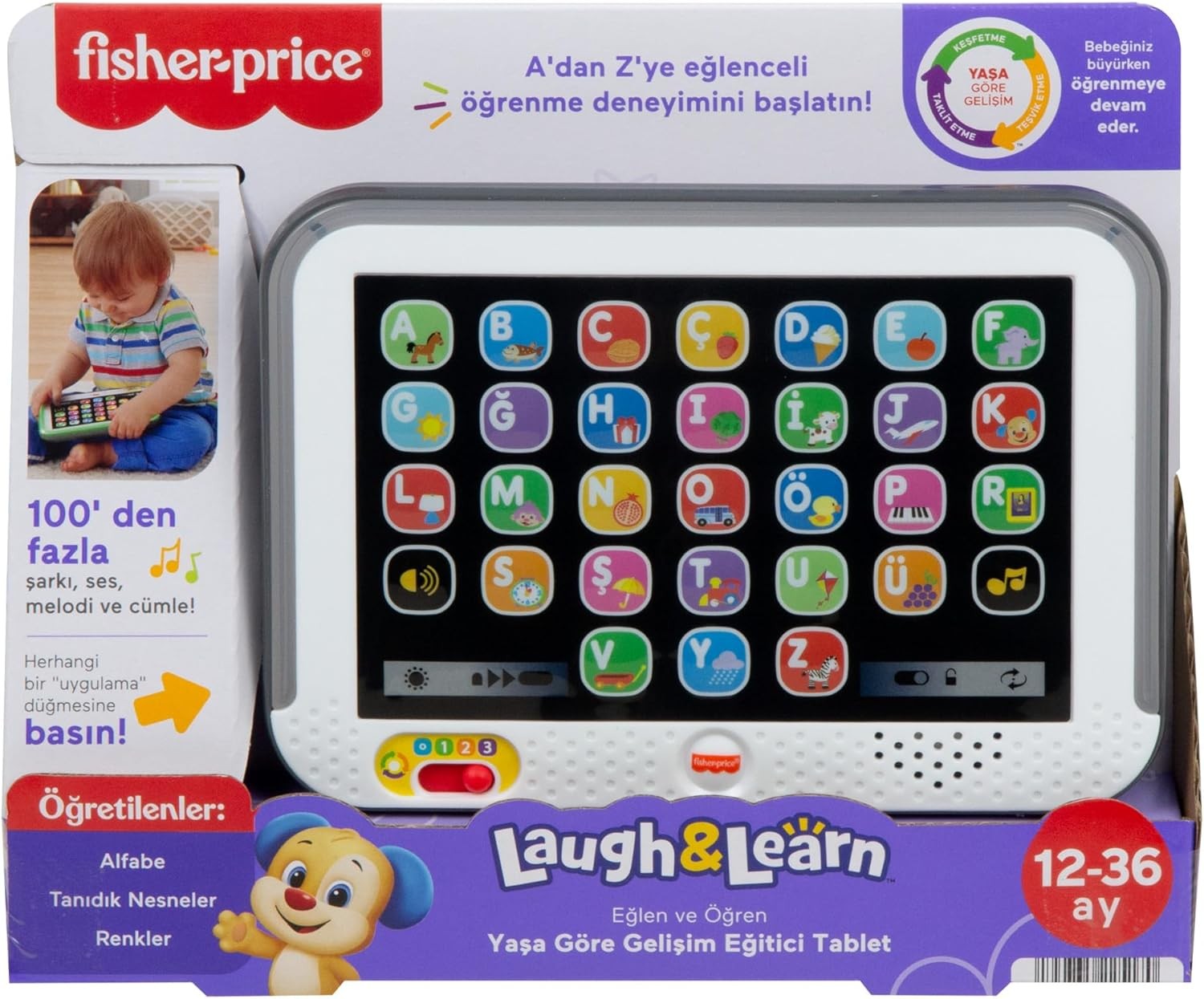 - Alfabeyi, aşina oldukları nesneleri ve renkleri türkçe tanıtarak bebeğinizin gelişim adımlarına uyum sağlayan 3 yaşa göre gelişim seviyesi bulunur